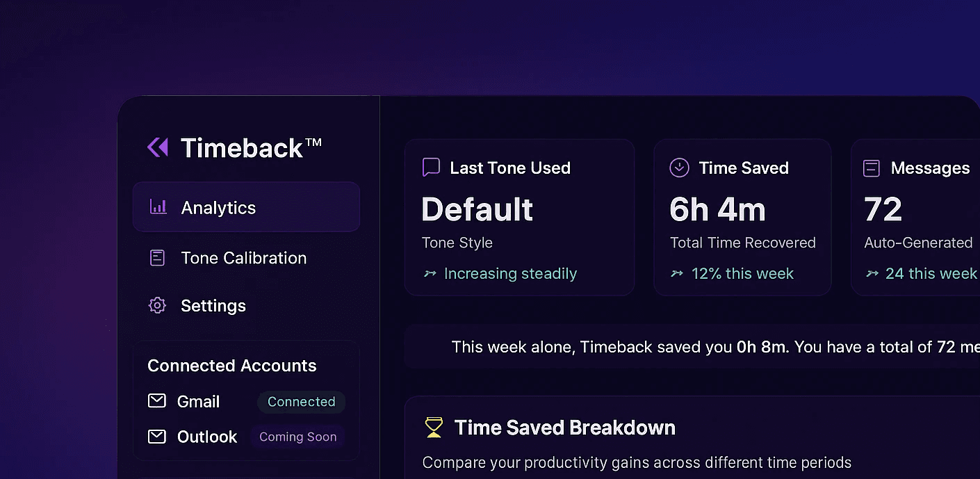 Stop Wasting Hours In Your Inbox. Timeback Sorts, Replies In Your Tone, And Gives You Back Control